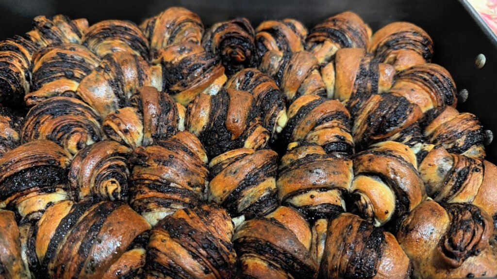 מסדרים בתבנית אפיה 20X30 במרווחים קטנים, ומתפיחים באיזור חמים/בתנור כבוי עם אמבט מים חמימים כשעה